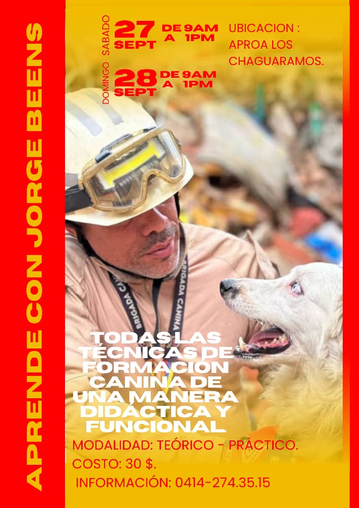 El evento se llevará a cabo en la sede de APROA Los Chaguaramos, y será de modalidad teórico-práctica, dirigido a dueños de mascotas que busquen fortalecer la comunicación con sus perros mediante métodos basados en refuerzo positivo. Las sesiones se realizarán de 9:00 am a 1:00 pm, con un costo de inscripción de $30 USD. Información e inscripciones: 0414-2743515.